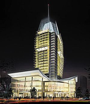 天津富力城大廈舉行了奠基儀式。該大廈是響螺灣商務(wù)區(qū)最高的建筑,高度為385米,地上93層,地下4層,相當(dāng)于3個(gè)泰達(dá)中心酒店的高度。富力城項(xiàng)目占地2.3萬(wàn)平方米,總建筑面積約42.5萬(wàn)平方米,項(xiàng)目總投資約為20億元。建成后主要功能為酒店、商務(wù)寫字樓、商業(yè)設(shè)施等。