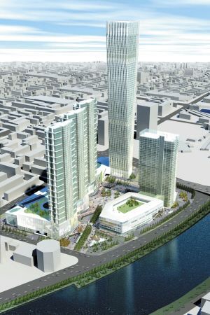 在內(nèi)部的構(gòu)造當(dāng)中,新的城市綜合體理念我們要引進(jìn),這個(gè)核心是把我們的商務(wù)樓宇、商務(wù)辦公總部聚集,它的比重達(dá)到了35%、40%、50%以上,同時(shí)配有大型的酒店和休閑廣場(chǎng),還有公寓這些方面的居住、洽談上商務(wù)地區(qū)。我們安排了三座300米以上高度的樓宇,還有香格里拉這樣的大型知名酒店,還有安排了大型采購(gòu)商品交易展示的設(shè)施,我們的居民可以到那里看到我們的商場(chǎng)中心,整個(gè)功能是非常先進(jìn)的。