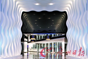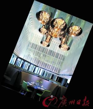 走近酒店,一種滲透著摩登的神秘感撲面而來,黑色的大門往里打開,迎面看到一條有著白色波浪形設計的天花板、墻壁的長走道,藍光從起伏的波紋背后透出來,使人仿佛置身于汪洋大海中又像到了科幻的太空。酒店大堂也以黑色、紫色的神秘色調為主,巨大黑色筒燈里透出金黃色燈光,遠處背景墻與地面裝置不斷變換出綠色、紫色等柔和曖昧的色彩,而為了迎接新年的到來,酒店四處還點綴了白色、紫色的小鹿、小天使、蠟燭臺等現代雕塑藝術品,神秘氣氛中充滿著夢幻的色彩。