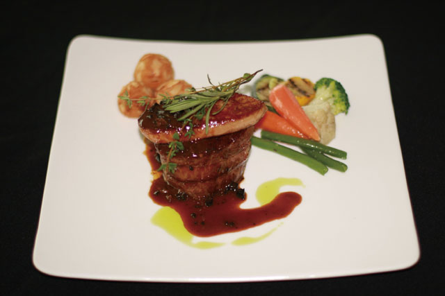肝配黑沙司、香煎西冷牛排配香料黃油醬、香煎牛眼肉排配貝亞恩沙司、香煎牛里脊配各類亞洲蘑菇和脆