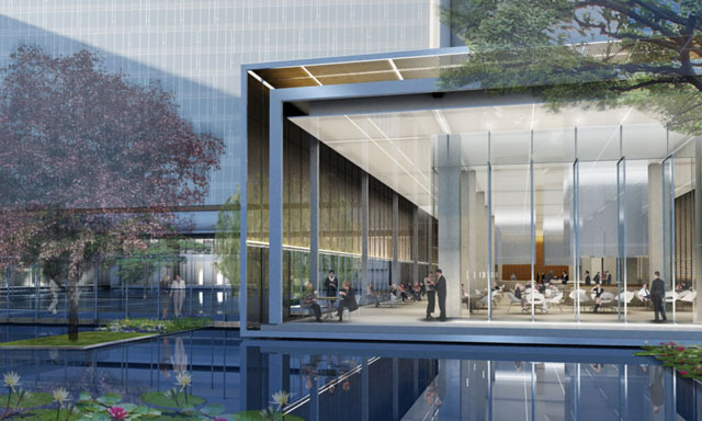 建筑設計公司Skidmore Owings and Merrill(SOM)在這座豪華酒店的設計中融入了中國傳統(tǒng)的水幕、竹
