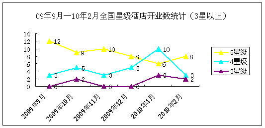 根據(jù)邁點(diǎn)信息中心星級(jí)酒店開業(yè)統(tǒng)計(jì)數(shù)據(jù),本月星級(jí)酒店的開業(yè)酒店13家,對(duì)比1月份開業(yè)20家,本月開業(yè)酒店數(shù)量明顯下降,但相較于09年第4季度的星級(jí)酒店平均開業(yè)15家酒店,數(shù)量上基本持平。而觀察本月開業(yè)酒店,開業(yè)時(shí)間基本集中在農(nóng)歷春節(jié)前夕,與上月分析的情況相一致。