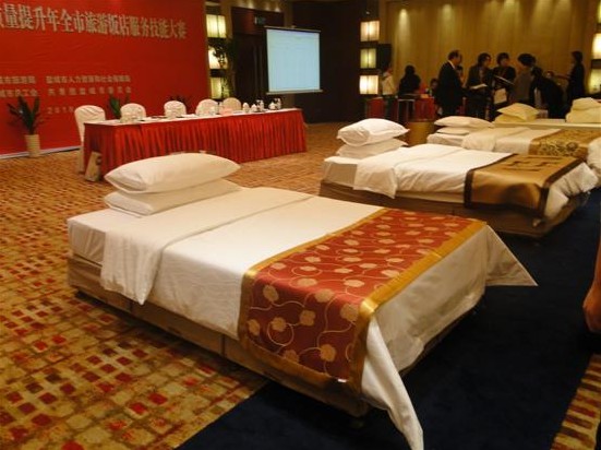 亞邦國際大酒店此次比賽共參加西餐擺臺、中式鋪床和中餐擺臺三個項目,共7名員工參賽。參賽員工積極、熱情,敢于創新,將創意與基本技能相融合,大膽展示了新時代新人類對服務行業的時尚嗅覺,讓旅游行業、飯店行業資深的評委大贊此次比賽的高水準。各項目的角逐非常激烈,分數不相上下,解說員的現場講解讓觀摩的員工了解了評分細則,更深刻地投入到了比賽中,不知不覺中吸收了知識。