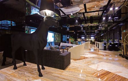 作為一個資深的酒店愛好者,總結出一條經驗:北京或上海的“精品酒店”,大隱于市,常常讓人找不到門在哪里。杭州大廈賓館地處杭州最繁華的武林廣場,大門倒是很好找,但大堂呢?不在一樓哦,在七樓。而走進大堂,引起我注意的,并不是大量鏡面玻璃造成的視覺沖擊,而是那座黑馬立燈。這座按照真實尺寸制作的作品,曾在米蘭家具展上造成話題,由新銳的荷蘭家具品牌Moooi出品。僅此一項,酒店的新風格就得到充分的展現。