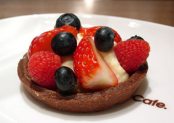這里的甜品外形粉嫩小巧,特別討少女們的喜歡。不過要試草莓千層酥這款甜品需要耐性,記者催了3次仍未見上桌。店員解釋,這款甜品是現(xiàn)點(diǎn)現(xiàn)做,需時(shí)5~10分鐘。上桌后,記者卻發(fā)現(xiàn)這是個(gè)“小矮人”,只見3片金黃脆片壘起“小塔”,在“塔”的“頂層”上粘著一片草莓薄片,在“二樓”上的則是兩塊,“三樓”上是3塊。其中這金黃脆片極薄而微甜,一折就斷,而在其光潔的碟面上還用草莓的鮮紅汁液,劃出一道優(yōu)美曲線。