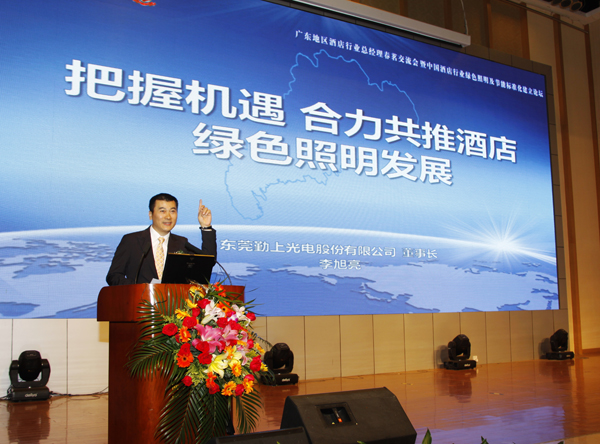 勤上光電是唯一一家受邀參加本次論壇的LED企業。勤上光電董事長李旭亮在論壇上發表了《把握機遇 合力共推酒店綠色照明發展》的主題演講,表示支持酒店行業建立行業照明標準,共同推動綠色節能照明發展。