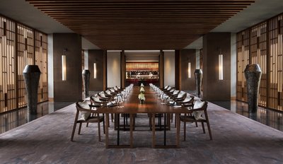 來(lái)自澳大利亞的行政總廚根據(jù)COS D'ESTOURNEL的口味,精心配制了4款佳肴,滿足味蕾感受。長(zhǎng)桌宴將在以質(zhì)樸木格墻間鑲以紅色瑪瑙與毛筆吊飾下、傳統(tǒng)書法地毯修飾的開放式廚房與三個(gè)獨(dú)立空間的絕佳私密聚會(huì)場(chǎng)所天海閣內(nèi),儒雅開幕。