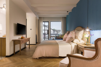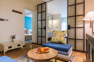花間堂的客房區(qū)分別位于古風(fēng)園與麗則女校內(nèi),在此次第一期開業(yè)的古風(fēng)園客房設(shè)計(jì)概念上,引用了色彩與材質(zhì)元素來述述一個(gè)女子成長(zhǎng)的旅程-『從天真奮發(fā)的少女蛻變?yōu)橹枣虫玫氖缗隆弧R躁?yáng)光燦爛的黃, 學(xué)院的藍(lán), 情竇初開的玫紫, 純真少女的米白色軟布襯托, 搭配淡色藤木纏繞編織出『麗則女孩兒』特有的花漾雅居。家具采用純天然原材料,環(huán)保再生, 體現(xiàn)誠(chéng)勤樸愛的女校風(fēng)范, 典雅細(xì)膩的設(shè)計(jì)營(yíng)造出無憂歡笑的輕松氛圍,開放而跳躍的空間設(shè)計(jì),彷若當(dāng)年青春年少的夢(mèng)想空間。入住其中,你不但可以體驗(yàn)民國(guó)名媛的校園生活,更能重溫專屬于自己的青春回憶, 那天真奮發(fā), 一起歡笑一同成長(zhǎng)的日子。花間堂也準(zhǔn)備將此處作為創(chuàng)意的搖籃,在未來,除了規(guī)劃展出各類的藝術(shù)展,更會(huì)邀請(qǐng)新世代的創(chuàng)意藝術(shù)家入住其中,讓創(chuàng)意藝術(shù)在呼應(yīng)前人的理念下更為鮮活。