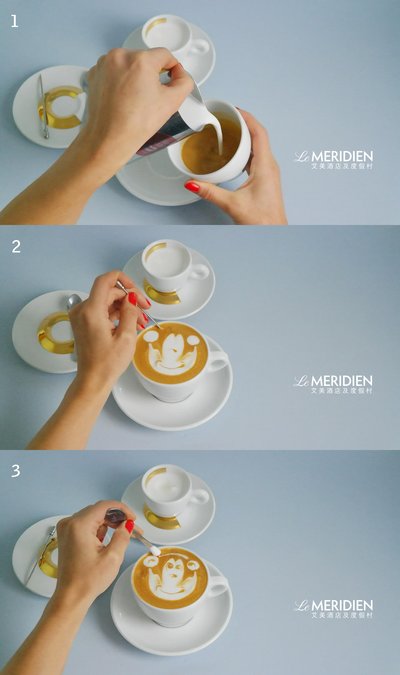 艾美酒店猴年咖啡拿鐵拉花制作步驟: