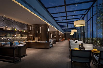 酒店整體基調以深色為主,原料古樸,頗有哲學氣,又孕育著書香味。酒店大門并不是一下子就能發現,從右邊進入,穿過兩扇厚重的門,眼前突然一亮:這就來到了大堂。兩邊挑高的墻掛著山水畫,架子上是各式古籍和瓷器,濃濃的古典中國風撲面而來。辦理入住非常方便,美食吧、前臺、禮賓部圍著四方而立,坐下來喝上一杯飲料,行李和入住手續就已妥當,此時前臺已通過聯動房控系統將房間空調打開。進電梯刷房卡,自動選取房間所在樓層,整套流程先進流暢,處處貼心。