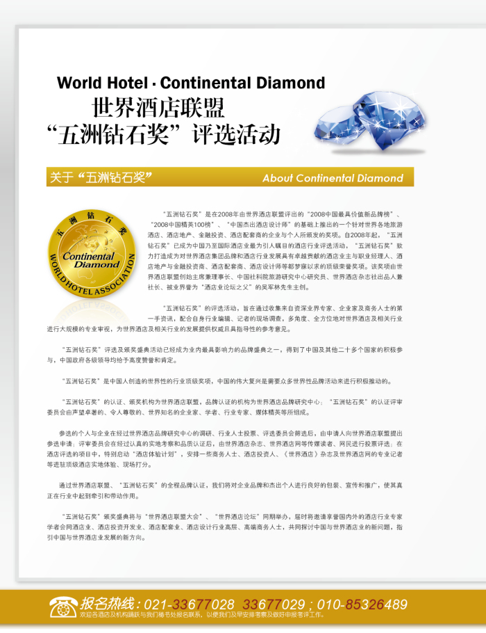 - 五洲鉆石獎·年度最具發展價值酒店集團Continental Diamond Award·Annual Most Promising Hotel Group