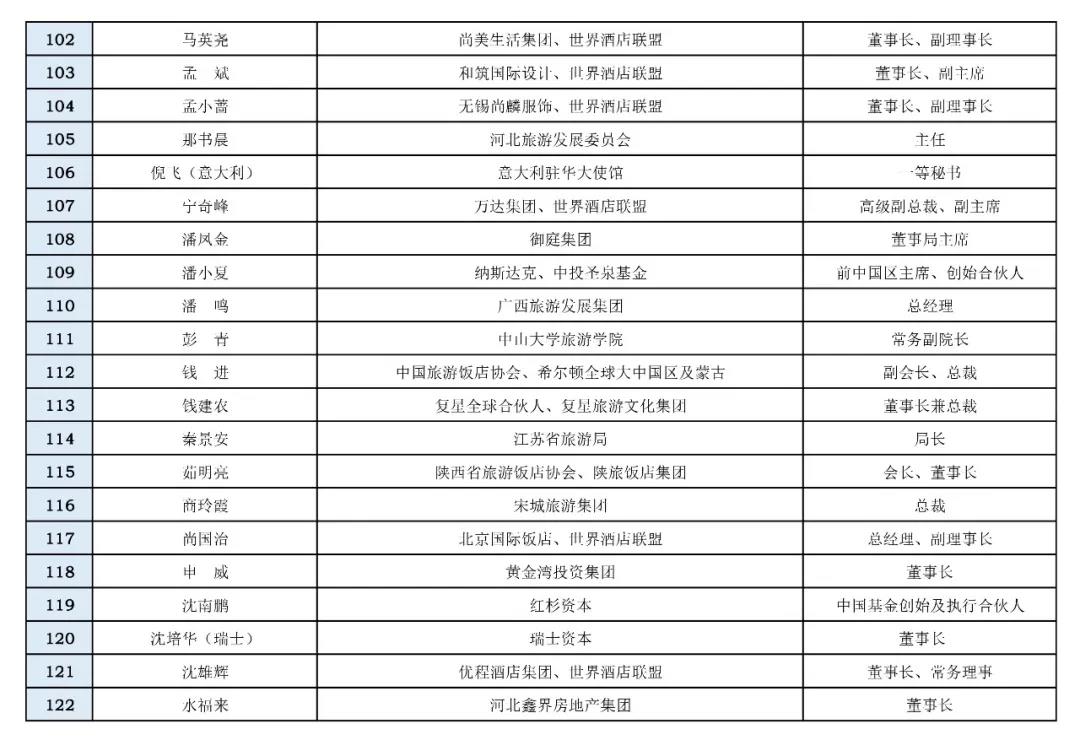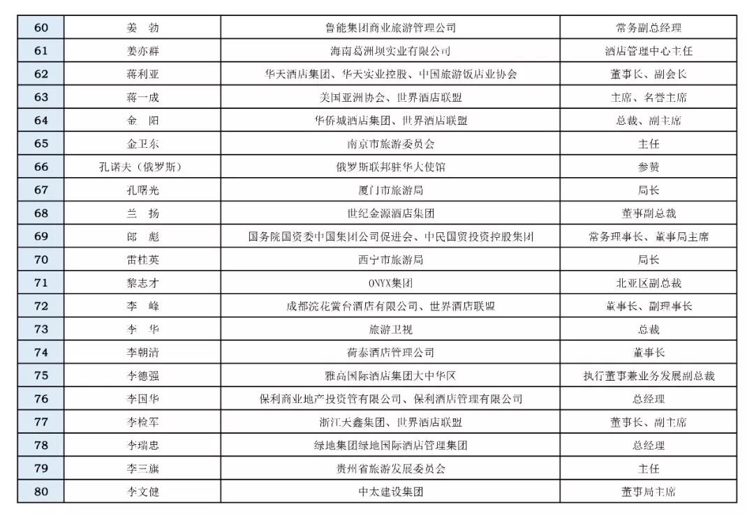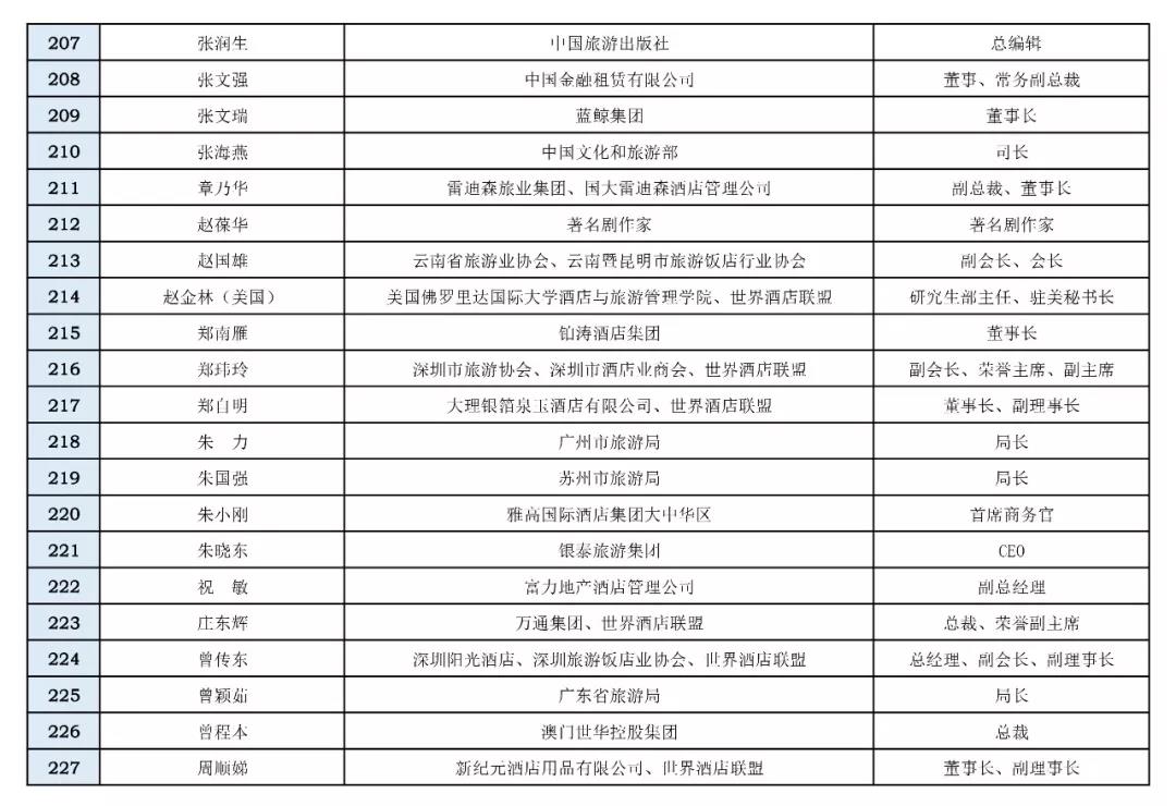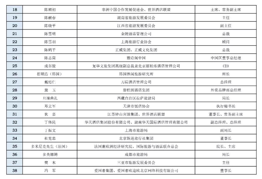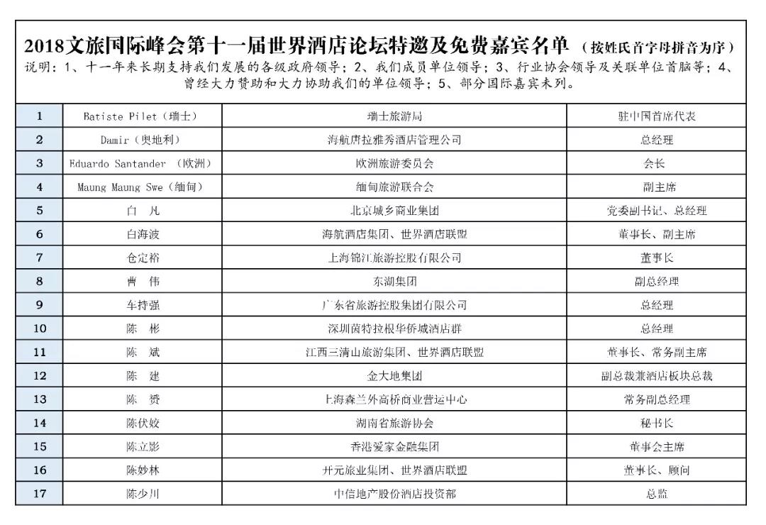 各位領(lǐng)導(dǎo)、同仁及跨界嘉賓:您們好!現(xiàn)將“文旅國際峰會暨第十一屆世界酒店論壇”擬邀和已確定參加的領(lǐng)導(dǎo)、嘉賓和企業(yè)家名單 (第一批,包括免費嘉賓),現(xiàn)予以公布。如果您有任何建議和意見,歡迎向秘書處積極反應(yīng),以便妥善安排您及時參加峰會及論壇,我們熱情期待2018年10月11—13日在昆明洲際酒店相聚!